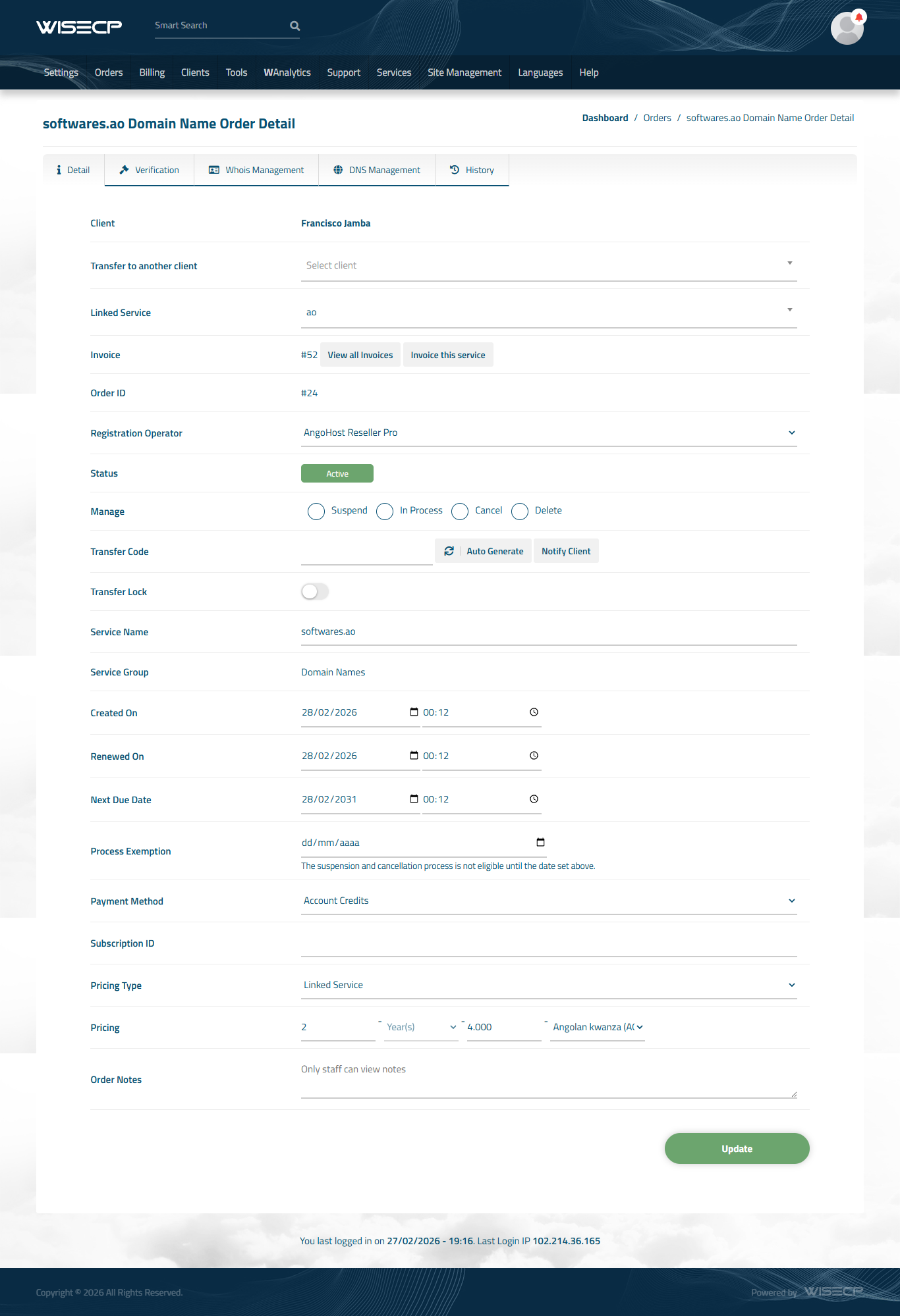 AngoHost Reseller Pro – Domain Registrar Module domain .ao .it.ao .co.ao .org.ao .edu.ao