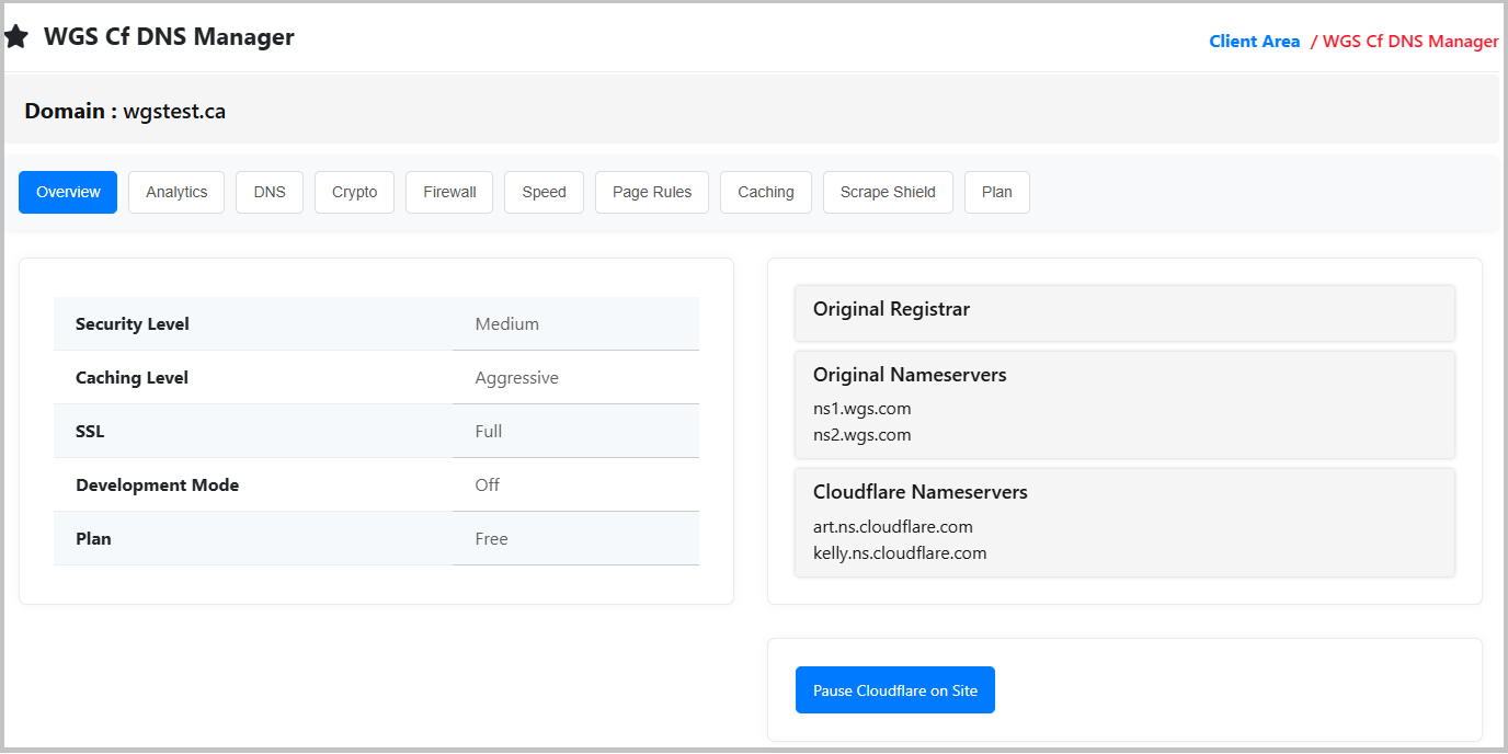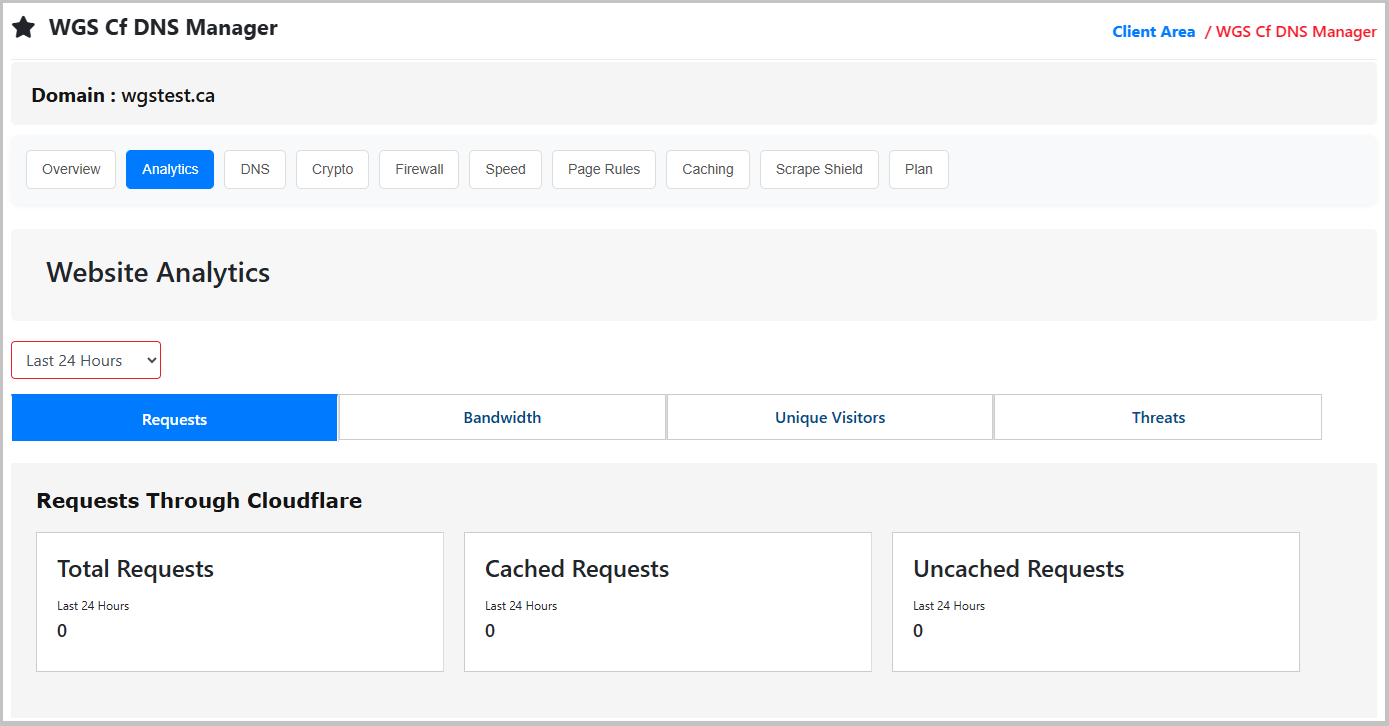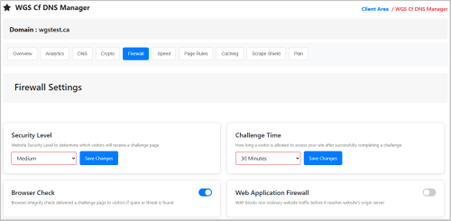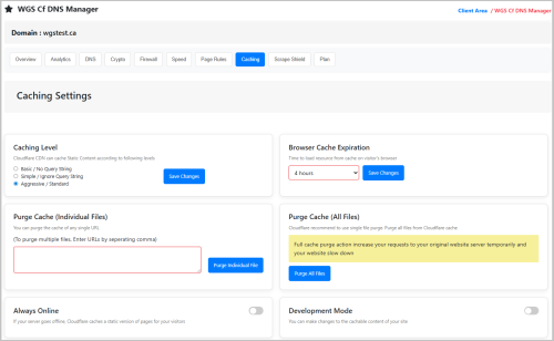 Manage all Cloudflare DNS zones and records directly from WISECP admin, including cache purge, development mode control, and real-time DNS configuration without logging into Cloudflare separately.