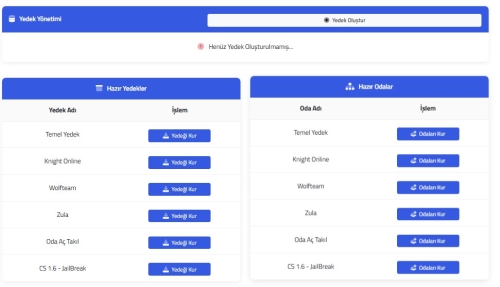 - Sunucunuzun anlık yedeğini alabilir, geri yükleyebilir ve yedeği silebilirsiniz.